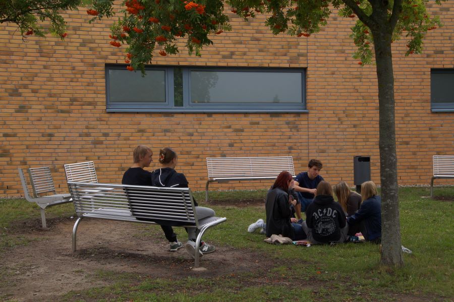 Beliebter Lern- und Pausenort der Gymnasiasten – ob auf der Bank oder unter Bäumen.