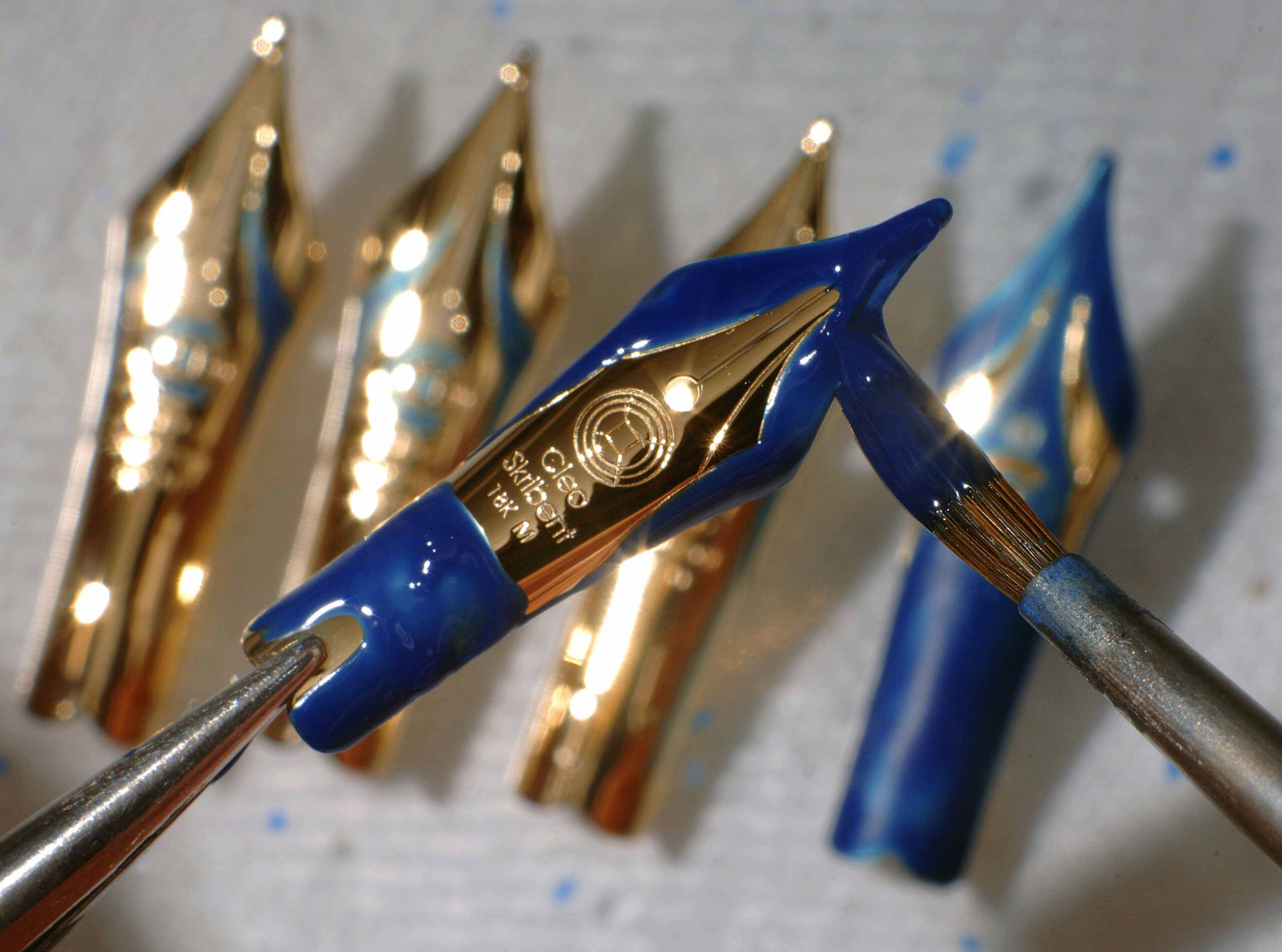 In der Galvanik bekommen die Federn in Handarbeit ihren individuellen Cleo-Skribent-Look.