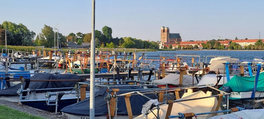 Der Blick vom Hafen auf die Stadt Prenzlau.